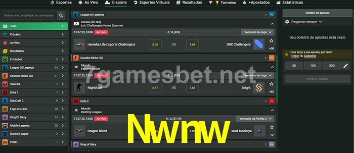 O Nwnw oferece uma grande seleção de opções de apostas em e-sports com probabilidades competitivas